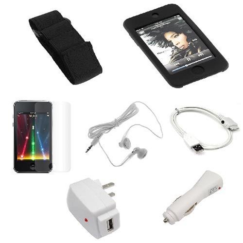 USB Data Cable + USB Car Charger + USB Home Charger + Black Rubber Silicone Skin Case + Elastic Armband + Clear Reusable LCD Screen ALl the accessories for iPod, Package includes: Protector + White 3.5mm Stereo Headset for Apple Ipod Touch Itouch 8GB 16GB 32GB 2G 2nd Generation